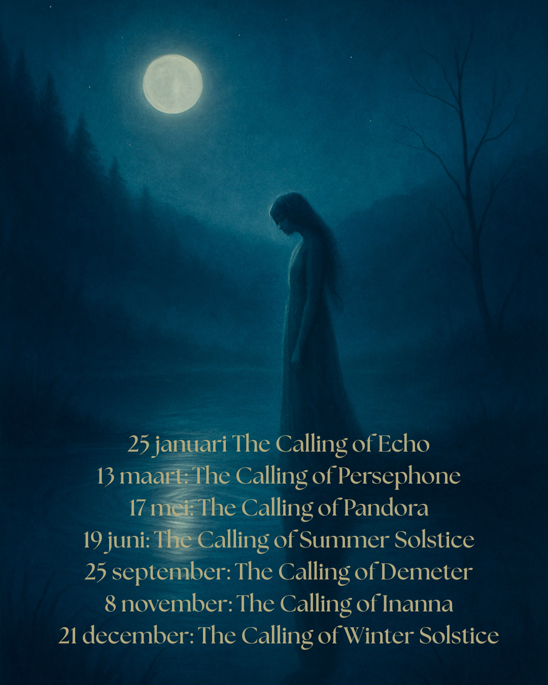 In 2026 word je zeven keer uitgenodigd om mee op reis te gaan. Gedragen door de mythologie van het vrouwelijke neem ik je mee op een Innerlijke Reis naar dat deel van je dat gehoord wilt worden.